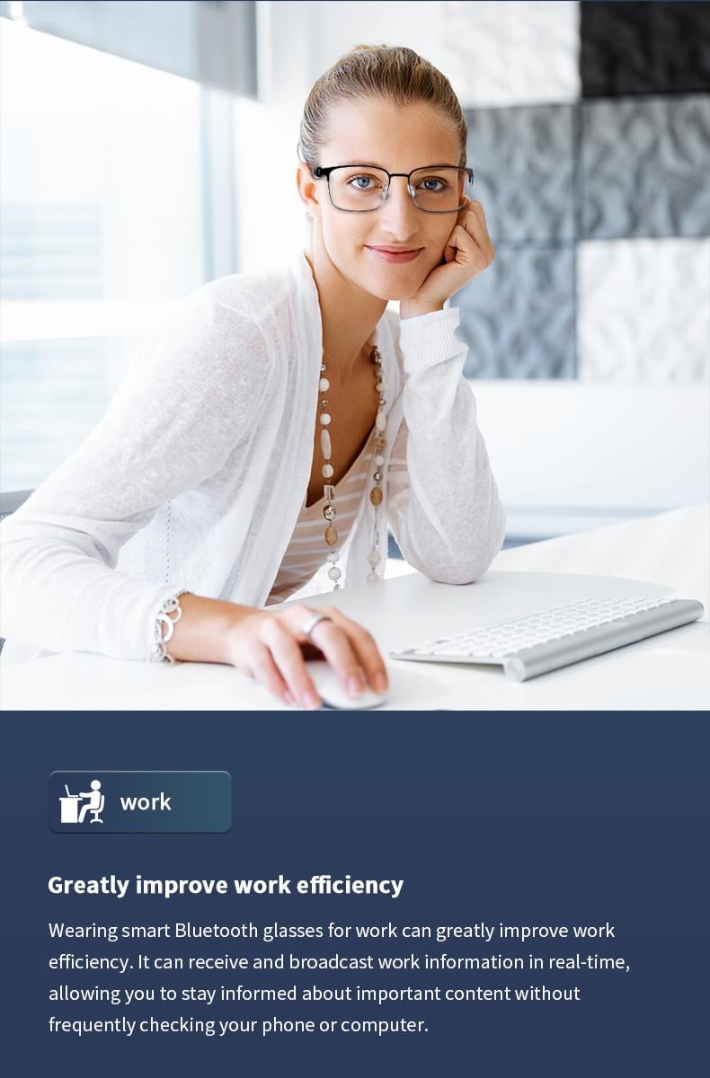 Our blue light blocking glasses come with two built-in speakers, featuring AAC audio decoding technology for high-quality sound. Enjoy music, podcasts, or calls while staying aware of your surroundings.